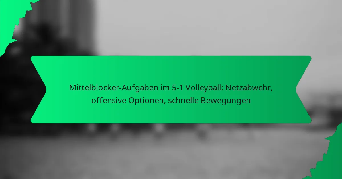 Die Hauptaufgaben eines Mittelblockers im 5-1 Volleyball umfassen die Netzverteidigung, das offensive Scoring und schnelle Bewegungen. Diese Position ist entscheidend, um gegnerische Angriffe zu stoppen und zur offensiven Strategie des Teams beizutragen.