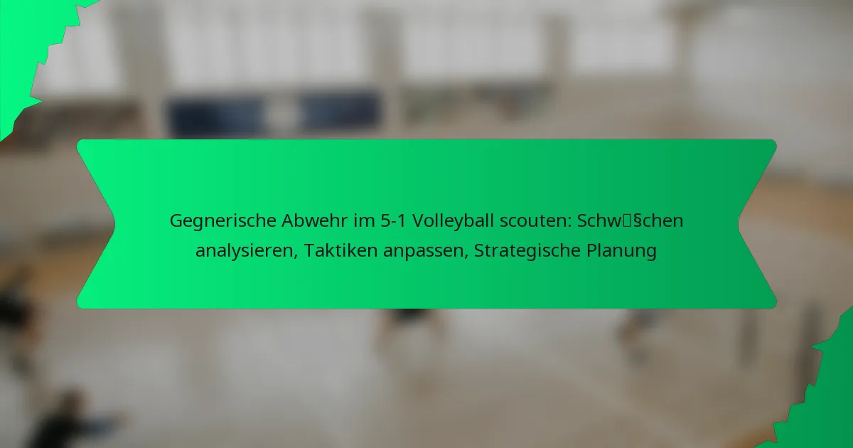 Das Scouting der Abwehr des Gegners im 5-1 Volleyball ist entscheidend, um Schwächen zu identifizieren und die Teamleistung zu verbessern. Durch die Analyse der Spielerpositionierung, Kommunikation und Abwehrstrategien können Teams Schwachstellen aufdecken, die sie ausnutzen können. Diese strategische Planung ermöglicht taktische Anpassungen, die den Ausgang eines Spiels erheblich beeinflussen können.